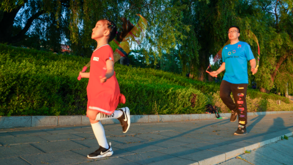 丰富体育活动基础上,线上赛事已经成为人们家庭关系的“润滑剂”。年近七旬的北京市民李革庆鼓励孙子报名了由国家体育总局群体司、中华全国体育总会群体部联合国家体育总局社会体育指导中心主办的全国短视频跳绳创意挑战赛。他说:“我们这代人对跳绳有特殊情结,记得年轻时候在工厂上班,大家经常在‘工间’比试跳绳,那个时候就是比谁跳得多,现在还有了这么多花样儿,从小就让孙子练跳绳。居家隔离期间,每天都为小孙子摇绳儿,感觉很好,更重要的是,和小孙子的互动可以增进感情,这对于上了年纪的人来说很重要,这两天我老伴儿也嚷嚷着一起跳。”