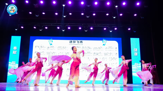 南宁市兴宁区三塘镇中心幼儿园的孩子们表演了《幼儿活力健身操》,充满童趣与活力;南宁市北际路小学学生演示了针对青少年常见体态问题的《圆肩驼背挺拔操》;广西幼儿师范高等专科学校学生呈现了面向办公人群的《办公室一平米肩颈操》;南宁市老年人武术协会骨干则展示了《弹力带操》。四个年龄段的展演生动呈现了南宁市覆盖全生命周期、精准对应不同群体需求的科学健身指导体系。